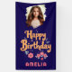 Floral Flowers Happy Birthday Handlettering Photo Banner. Celebrate a special girl's birthday with these charming personalised birthday backdrop! Featuring a hand-drawn floral design, cheerful "Happy Birthday" text in playful orange script, and a custom photo and name.