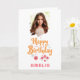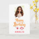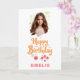 Celebrate a special girl's birthday with this charming personalised card! Featuring a hand-drawn floral design, cheerful "Happy Birthday" text in playful orange script, and a custom photo and name. Ideal for daughters, nieces, granddaughters, or friends.