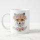 This design features watercolor portrait of a fox wearing a halo of flowers.
