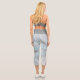 Floral Fractal Modern Abstract Flower Blue Grey Capri Leggings