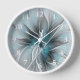 Floral Fractal Modern Abstract Flower Blue Grey Clock