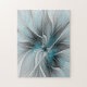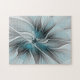 Floral Fractal Modern Abstract Flower Blue Grey Jigsaw Puzzle