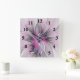 Floral Fractal Modern Abstract Flower Pink Grey Square Wall Clock