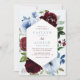 floral frame burgundy & dusty blue wedding invitation