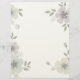A soft and elegant floral border design featuring pastel flowers in shades of lavender, cream, and pale sage. The blossoms are placed gracefully in each corner, leaving the centre open for text or artwork. Gentle green leaves and subtle shading create a balanced, airy composition