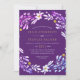 White floral frame with gold confetti purple winter wedding Invitation. A beautiful white frame and gold confetti adorn this wedding invitation. A pattern of gold confetti and floral garlands adorn the back.
