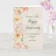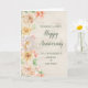 Happy wedding anniversary card for friend and his wife with elegant pastel watercolor flowers and spring greenery and a rustic wood pattern.