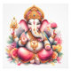 Behold this serene depiction of Lord Ganesha, the remover of obstacles, surrounded by a vibrant array of flowers. His gentle expression and symbolic gestures radiate blessings and auspiciousness. The soft pastel hues and intricate details create a visually appealing and spiritually uplifting artwork. This piece beautifully blends traditional Hindu iconography with a touch of modern artistry, making it perfect for devotees and art lovers seeking a symbol of prosperity and new beginnings.
