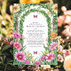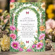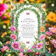 Celebrate your special day with this enchanting garden wedding invitation, featuring a lush archway adorned with greenery and vibrant flowers. Butterflies flutter around the design, adding a whimsical touch to the serene, off-white background. Perfect for a spring or outdoor wedding, this invitation captures the romance and beauty of a garden in full bloom, ideal for couples who love nature and elegance.