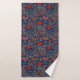 Floral Garden in Reds on Dark Blue Background Bath Towel Set