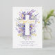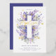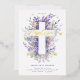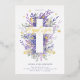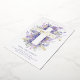 Celebrate your son or daughter's baptism with our beautiful floral cross design. Our design features an elegant layout that creates the impression of a cross with our hand-painted watercolor purple and lilac foliage and abstract florals with sage green leaves and greenery. "Baptism" is displayed in modern script calligraphy with gold text, butterflies, and foliage. Artwork hand-painted watercolor by Moodthoogy Papery.