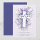Floral Garden Purple Foliage Cross Baby Baptism Invitation