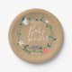 Featuring a modern floral garland of spring flowers on a rustic kraft boho background on this pretty chic gender neutral baby shower, sprinkle or couples shower paper plate.