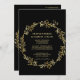 Black and Gold Floral Geometrical Frame Wedding Invitation with a personalised photo on the back.