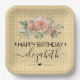 Floral Gingham Plaid Happy Birthday Paper Plates