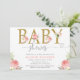 Floral girl baby shower, blush pink gold elegant invitation