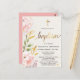 Invite your family and friends to celebrate Baptism of your daughter with these trendy watercolor floral invitation postcard featuring gold and pink flowers and gold script 'Baptism'.