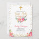 Girl First Holy Communion Invitation, with gold confetti and beautiful floral