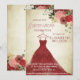 Floral glittery burgundy dress Quinceañera Invita Invitation