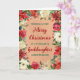 Merry Christmas for goddaughter and her husband card with rustic watercolor flowers and vintage brown paper pattern.