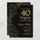 Floral Gold Black Surprise 40th Birthday Party Invitation
