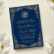 Floral Gold Frame Blue Islamic Muslim Wedding Invitation