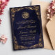Floral Gold Frame Blue Navy Islamic Muslim Wedding Invitation