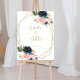 This floral gold geometric cards and gifts sign is perfect for a rustic wedding or bridal shower. The simple and elegant design features classic and fancy script typography in gold. The design features beautiful hand-painted dark blue, blue, navy, pink, blush, gold flowers and green foliage, adorning a geometric frame.