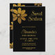 Floral Gold Glitter Flower Sweet 16 Birthday Invitation