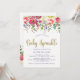 These lovely baby sprinkle invitations feature a pretty pink, purple, and green floral watercolor design, with faux gold look confetti and typography.
