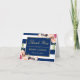 Floral Gold Navy Blue Stripes Wedding Thank You Card