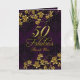 Floral Gold Purple 50 & Fabulous Thank You Card