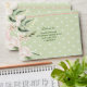 Our wedding invitation envelope features modern calligraphy on a green and white polka dot background with elegant white and pink flowers. Add your address and the address of your guests for easy mailing. Please shop our store for coordinating items.