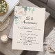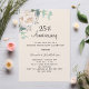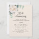 A soft beige, linen background. Decorated with a white floral, peony flower and green watercolored eucalyptus greenery. Personalise and add your names and the details
