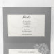Line art floral, poppies on a light grey, textured background, a modern wedding invitation tri-fold all in one combination.