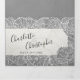 The response card is a cut off postcard, with meal choices and with the return address pre-printed. A modern all in one solution, to prevent the enclosed rsvp card to accidently end up under the refrigerator.