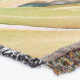 A quality printed throw has its advantages. This is a much finer weave throw than its loopier cousins, and though lighter, it is worth the investment for custom room accessorizing. The back is much prettier than the typical brown, and the fringe on the long sides very vivid, the selvage nicely done. Before photographing, I washed the throw in cold water, delicate, with a thicker woven throw the same size. On tumble dry low, this throw was dry in half the time as the other. This is a very practical quality if you use throws for furniture covers or to wrap up in frequently. The sleekness of the fabric makes it a great layer for accenting or protecting without the feeling of sitting on too much stuff. Perfect for napping or when you feel a light chill coming on. The color printing is beautiful and on this fabric, matched the design and color of my Photoshop image. This is an advantage for blending room fabrics and colors. The fringe on the short sides prints the colors from the design image and therefore varies from the side fringe. I streaked a white fractal line through the plaid pattern to give the illusion of weaving. This printed as crisp as an illusory thread, and put some white in the short side fringe, showing another advantage of print vs loomed- for artistic purposes, line lines, detail, and color integrity can be planned and preserved. My loomed throws have color limitations and more of a needlepoint texture. Print throws reproduce an exact image. The throw felt a little stiff straight out of the package, but this went away in the first delicate wash. Of course I searched the wash water for ink or bleeding and there was none.