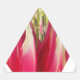 This artwork presents a heart-shaped composition intricately formed by stylised floral elements. The dominant colours include vibrant shades of red and pink, beautifully contrasted against a dark, almost black background that features a subtle gradient fading towards white within the heart itself.