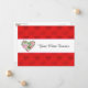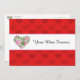 This is a postcard style greeting card. Everything Valentines Day is here. A pattern of red hearts with a white band in the middle. Inside the band there is a floral heart and text that can be customised. Also there are ruled lines for the mailing address. If you don't want to use this as a postcard, you can remove the ruled lines and use this card with an envelope.