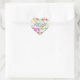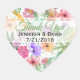 Pretty wedding favour stickers, with watercolor artwork of colourful flowers forming a heart shape. Personalise the text for your special day. Great on your wedding favours. Matching products available.