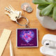 Floral Heart on Purple Custom Square Keychain