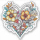 Pretty flowers in a heart gold stickers. Tattoo style art floral heart.