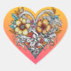 Pretty flowers in a heart gold stickers. Tattoo style art yellow and pink floral heart.