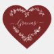 Floral Heart Thanks in Spanish Burgundy Background Heart Sticker