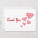 a decorative floral design featuring several hearts made up of colourful watercolor roses or peonies on a thank you card.