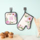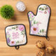 Floral Hebrew Shabbat Oven Mitt + Pot Holder Set