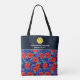 Super cute double-sided tote bag for your pickleball paddle and gear. Design features a yellow pickleball, two lines of custom text set above a red, blue, purple hibiscus floral pattern. Get matching ones for your club, team or pickleball trip . . . Makes a nice gift for the pickleball player in your life.
