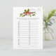 Floral Holly Christmas Bridal Shower Game Invitation