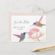 Check out these tropical Floral Watercolor Hummingbirds Save the Date Postcards, great for an outdoor wedding. These postcards feature watercolor illustrations of colourful hummingbirds, a pink peony, and gold string details all in an eye-catching scheme. Personalise the save-the-date with the bride-to-be and groom-to-be's names in elegant script typography. Colours include blue, green, pink, yellow, orange, and gold. Please see the photo for colour reference.