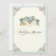 This is a mix of vintage printer's ornaments artwork and original water colours by Audrey Jeanne Roberts and it has been designed for a modern chic and contemporary wedding collection. There is a complete ensemble of products and can be created in several colorways. If you would like it to match your wedding let us know via email and we'll be happy to assist you. This design consists of a aqua blue double bordered edging with chocolate brown corner etching ornaments. There is a soft cream colour background and three sand dollars, a scallop shell and star fish starfish shells over laid on a trio of aqua blue hydrangeas. On the reverse side is the same design with only the shells and the elegant calligraphied script words "United in Marriage." PAPER SELECTION RECOMMENDATIONS: In addition to the standard paper offered, this would be exquisite with the Champagne or Ice Metallic Papers, Silver or Gold Metallic or any of the premium papers. YOU MIGHT ALSO ENJOY: